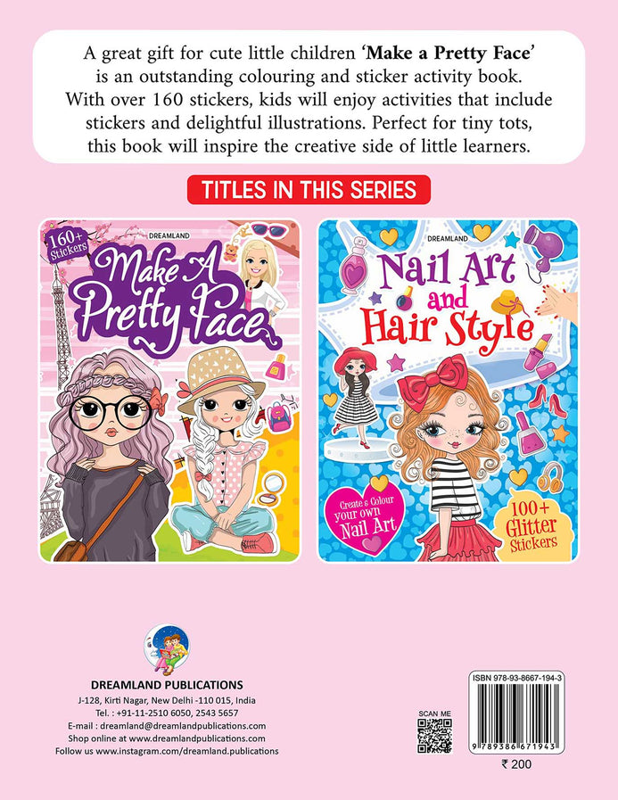 ‘Make a Pretty Face’ is a great gift for cute little children. This beautiful colouring and sticker activity book is perfect for kids to inspire their creative side. It is indeed a book is for honing makeup artistry and building confidence. • Perfect for creative kids • 48 pages with themes of adorable faces • 160+ stickers • Delightful illustrations • Dreamy eyes • Stimulates imagination • Cute colourful cover • Beautiful presentation Perfect for tiny tots, this book will inspire the creative side of little learners. It will help them strengthen their hand-eye coordination as they fill colours within the lines of given illustrations.