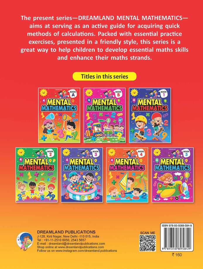 Mental math is a good skill performing math calculations in your head without a calculator or paper. Mental Mathematics Book – A covers various topics like counting, adding, subtracting, shapes, patterns, and more. Perfect as at-home learning or after school, this is wonderful book includes the practice needed to provide students with a strong mathematical foundation for ongoing success. • Ideal for age-group 4-12 years • Adorable 64 pages • Handy tips about calculations • Plenty of exercises • Charming cover This book is aimed at serving as an active guide for acquiring quick methods of calculations. It is bound to be useful not only during the school stage but in practical life also when the students have grown up to enter life.