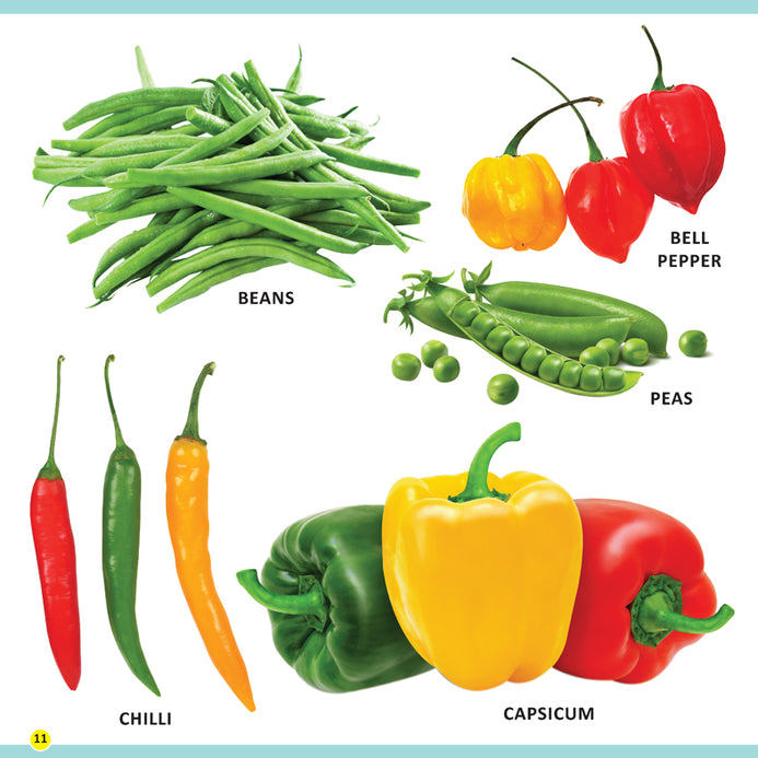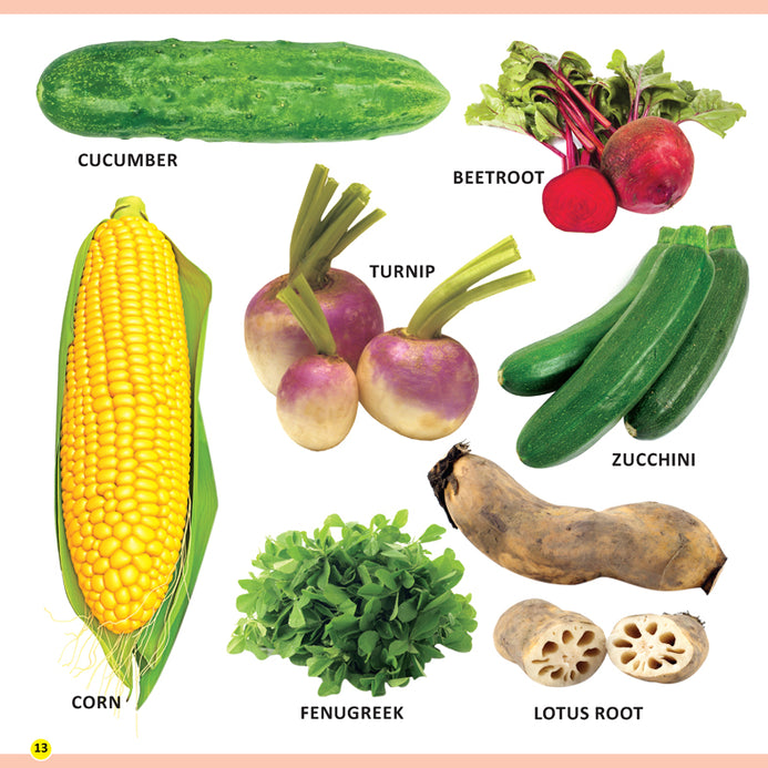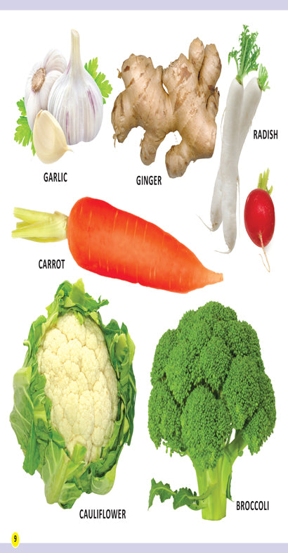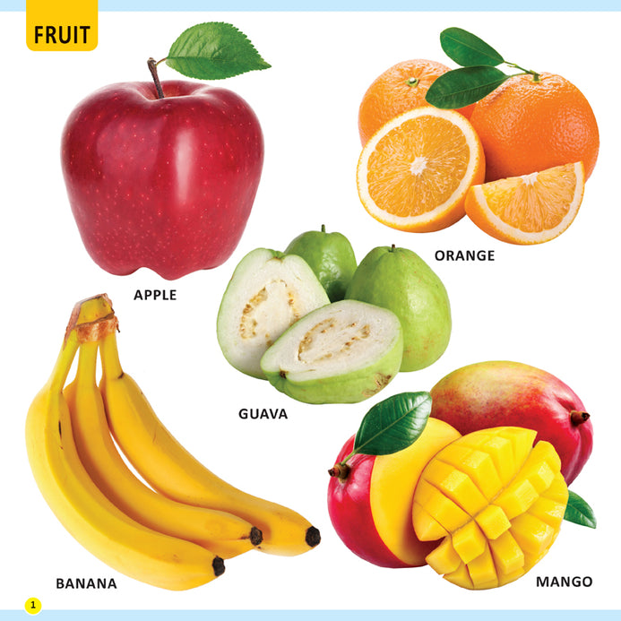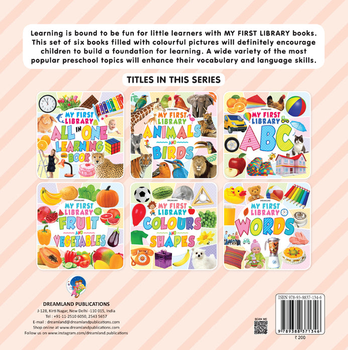 Learning is bound to be fun for little learners with ‘MY FIRST LIBRARY BOOK – FRUITS AND VEGETABLES’. This book stuffed with colourful pictures will definitely encourage children to build a foundation for learning and a wide variety of the most popular preschool topics will enhance their vocabulary and language skills. • Ideal for age-group 1-4 • 16 colourful pages • Cute cover design • Colourful presentation From apple, banana, mango to litchi, lime, lemon, and from potato, onion, tomato to pumpkin, peas, okra, and many more, this book highlights ample words each clearly labelled with pictures of fruits and vegetables. This makes it easy for kids to memorise and identify the names of fruits and vegetables. This book is indeed an important resource for developing language for early learners.