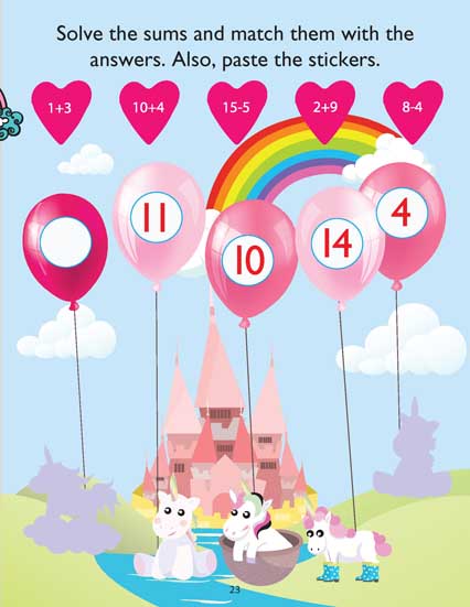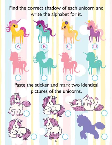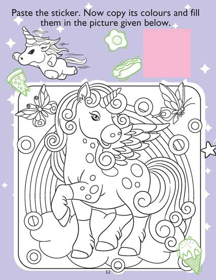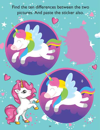 Colouring and similar activities help kids unleash their creativity. ‘Unicorn Sticker and Activity Book’ featuring unicorns and their magical friends is full of eye-catching, appealing illustrations and kid-friendly activities to engage little ones for hours. • Adorable colouring and interactive activities such as word search, find the difference, mazes, and more • 40 delightful pages • 2 high-quality sticker sheets • A nice gift for little learners • Enhances creativity • Stimulates imagination • Soothing colourful cover • Beautiful presentation • Suitable to colour with coloured pencils or crayons Perfect for kids, this beautiful book is a great present for holidays or birthdays. Young learners will love adding cute stickers of unicorns, rainbows, castles, quotes, and more and enjoy hours of imaginative fun.