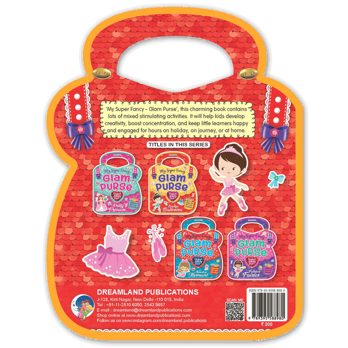 My Super Fancy- Glam Purse', this charming book contains lots of mixed stimulating activities. It will help kids develop creativity, boost concentration, and keep little learners happy and engaged for hours on holiday, on journey or at home.