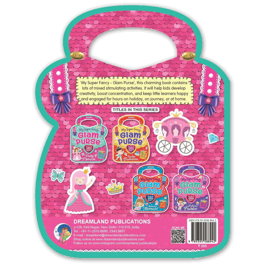 My Super Fancy- Glam Purse', this charming book contains lots of mixed stimulating activities. It will help kids develop creativity, boost concentration, and keep little learners happy and engaged for hours on holiday, on journey or at home.
