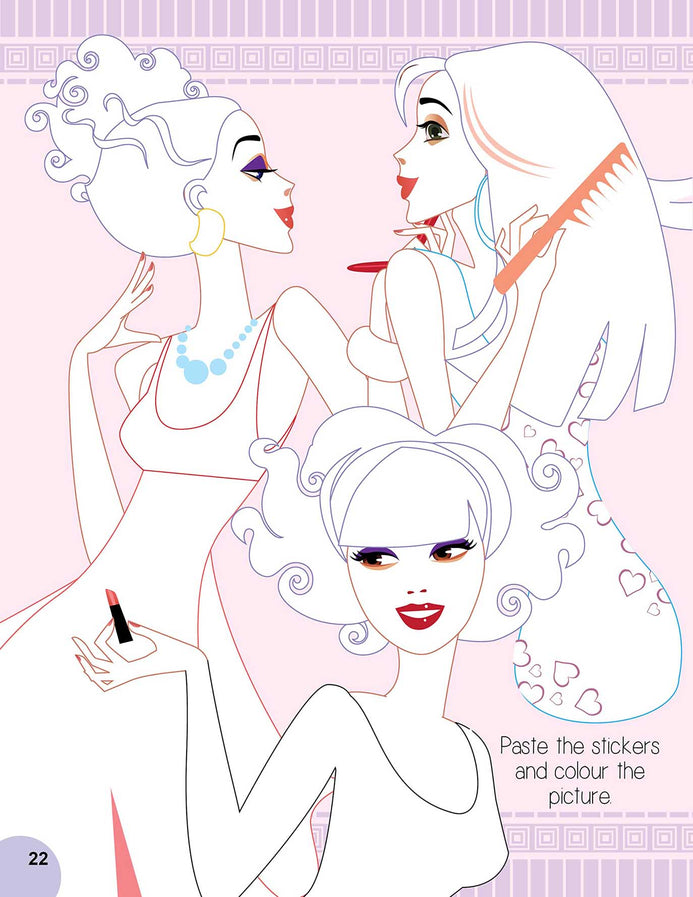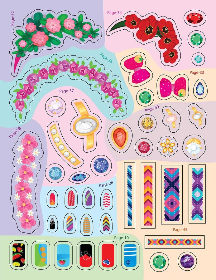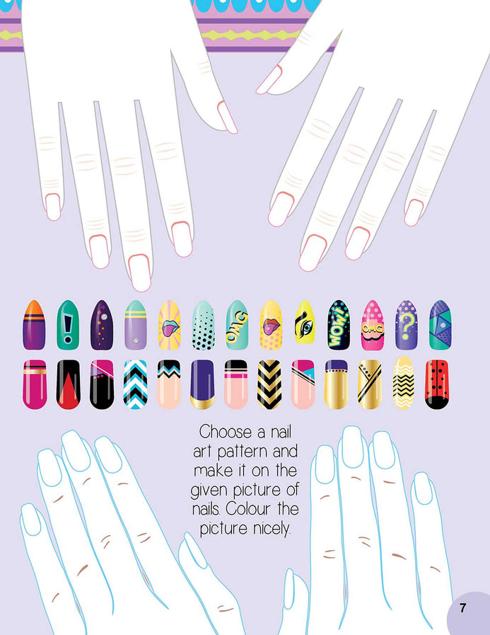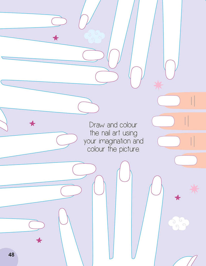 ‘Nail Art and Hair Style’ is an outstanding colouring and sticker activity book. This fun and engaging book is filled with cute faces, clean nails, hair styles to adorn with colours and stickers. • Perfect for creative kids • 48 pages with designs of face, fingernail, and hair styles • 100+ glitter stickers • Cute colourful cover • Beautiful presentation • A great gift idea Perfect for little hands, this book will keep kids relaxed and stimulate their imagination as they colour or adorn each page.