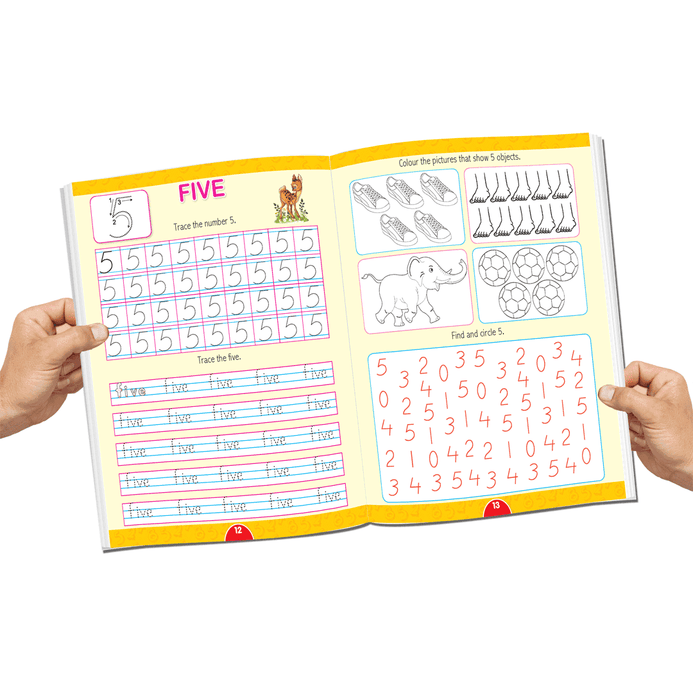 ‘Nursery Worksheets’ this pack of two books includes worksheets on English language and Mathematics. These books contain more than 100 illustration-based activities including maze puzzles, dot-to-dot, and many more. These activities aim to build the core language and math skills needed for success in school and beyond while having fun! • Ideal for age-group 2-5 • Two books of engaging activities • Cute cover design • Colourful presentation Perfect for at-home learners or preschoolers, these books with age-appropriate engaging fun activities will help early learners prepare for writing success, enhance their logical and problem-solving skills.