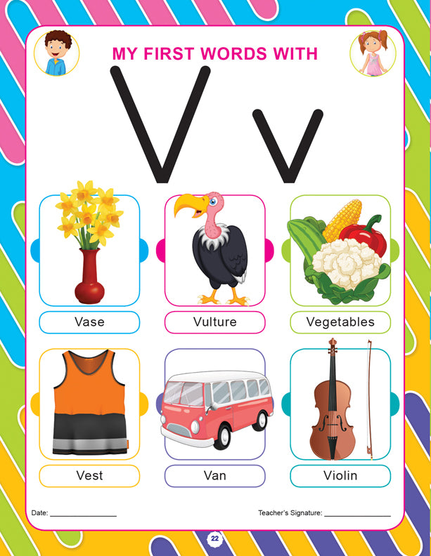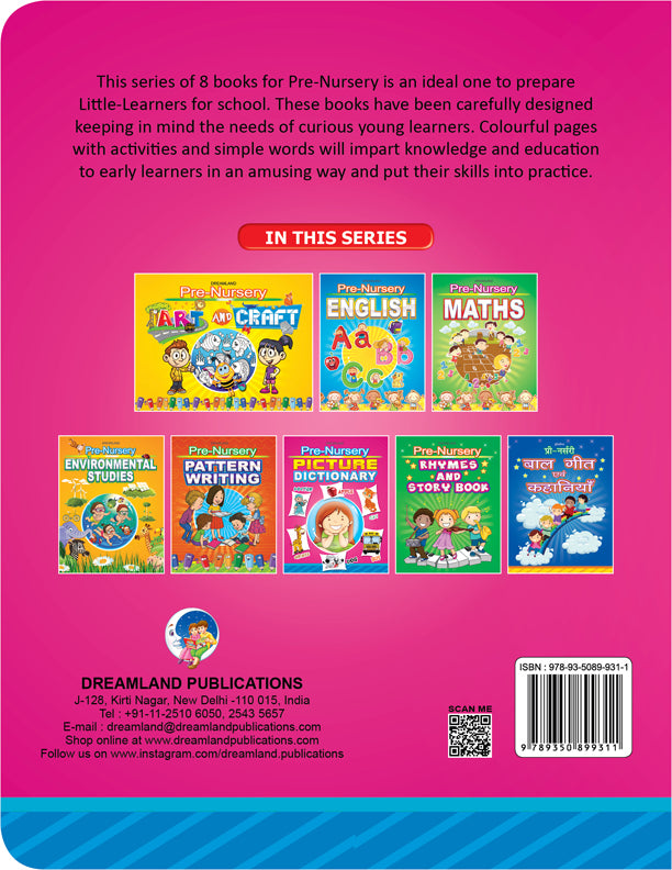 ‘Pre-nursery Picture Dictionary’ is aimed at helping early learners build their vocabulary skills with the help of beautiful picture presentations. This is an ideal gift for little learners to develop an interest in learning the alphabet and simple words beginning with each alphabet easily. • Ideal for age-group 2-4 • 32 pages • Cute cover design • Colourful presentation This age-appropriate book is an outstanding resource to give children a head start on a bright future. It will introduce children to letters of the alphabet making learning fun and they will definitely look to learning more and more.