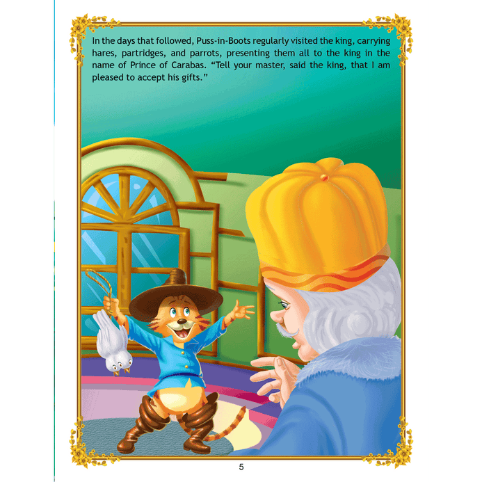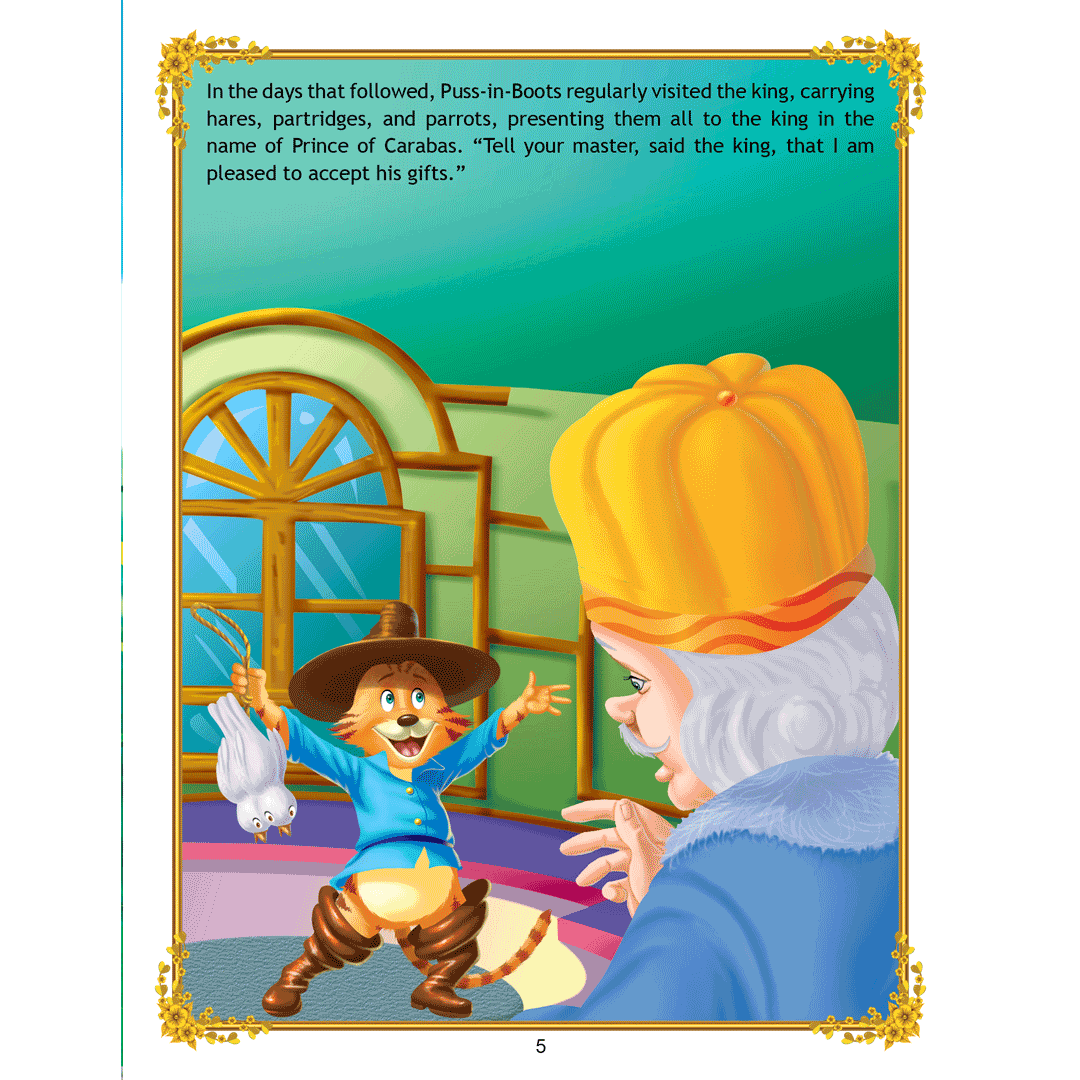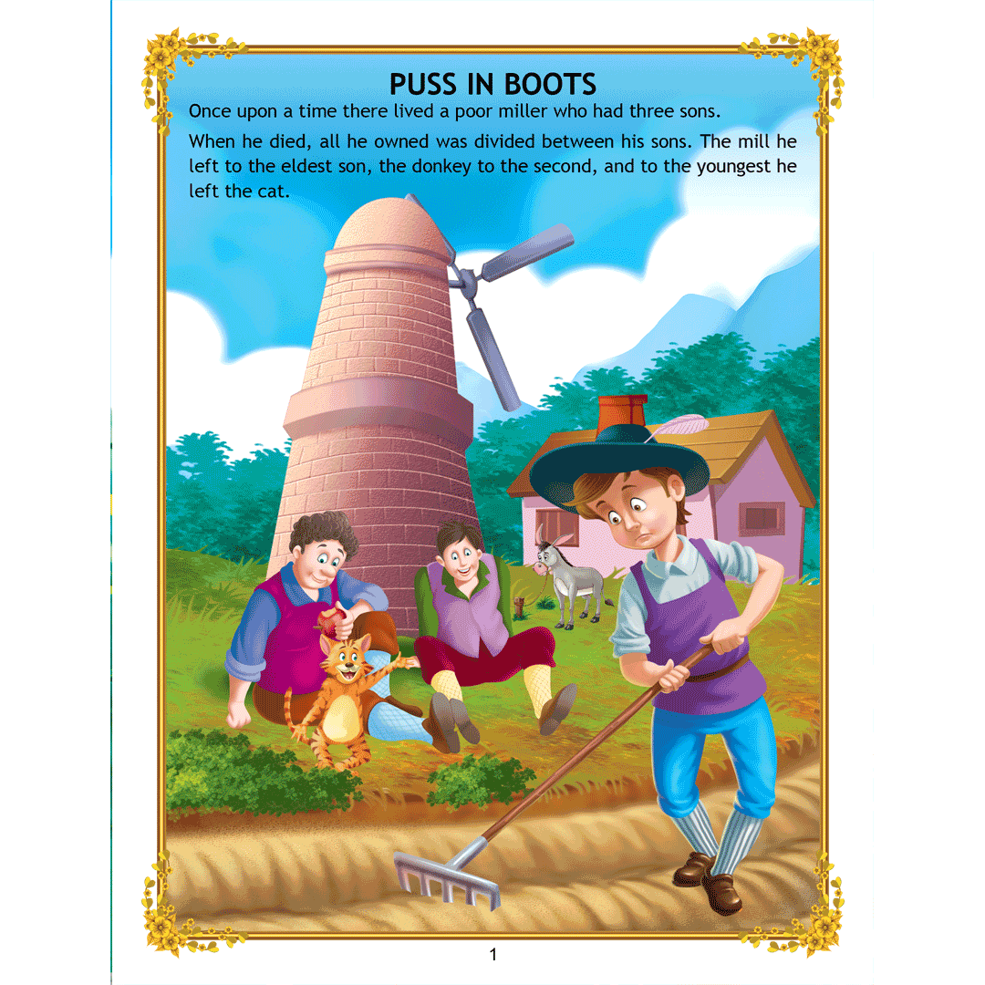 ‘Puss in Boots’ is a story of a witty wise cat that goes on a magical adventure when he receives his pair of boots. The cat represents the qualities of intelligence, bravery, and wittiness, and teaches a lesson that one should always rely on his abilities. Adorned with charming illustrations, retold in easy language, this is a beautiful book to treasure. • 16 pages • Ideal for age-group 2-6 years • Amazing illustrations • Colourful cover • Inculcates reading habit This storybook is sure to become a favourite of all readers. Filled with humour and adventure it will enchant young readers and listeners. Easy-to-understand text ensures that kids enjoy reading it and improve their language skills as well.