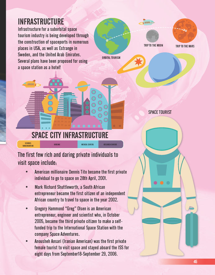 ‘Space and Beyond’ – this minipedia features incredible information to look at the universe, from the sun to the dwarf planets and everything a curious mind craves to know about space. This book includes colourful images, fascinating facts, and corresponding text to take kids into deep space and onto each planet. • Idea for age-group 5-15 years • 48 pages • Colourful images • Fascinating facts • Cute cover design This perfect learning book is an ideal reference for curious kids who want to find out about the wonders of space, the latest discoveries, space tourism, and more.