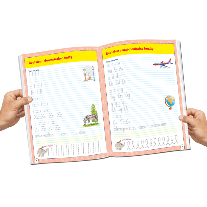 Great educational complement for primary school children ‘Super Handwriting Books Pack’ is a fun and innovative resource to teach kids writing each letter of the alphabet, combining letters to make words, and forming sentences with easy-to-follow directions. This is the perfect set of books to give beginner learners a head-start with 60+ pages of tracing and writing practice in each book. • Ideal for age-group 3-5 • A set of five books having 64 pages each • Cute cover design • Colourful presentation Organised in a progressive skill-building way these amazing handwriting practice books will help children develop their confidence to write neatly and improve their hand-eye coordination and motor skills.