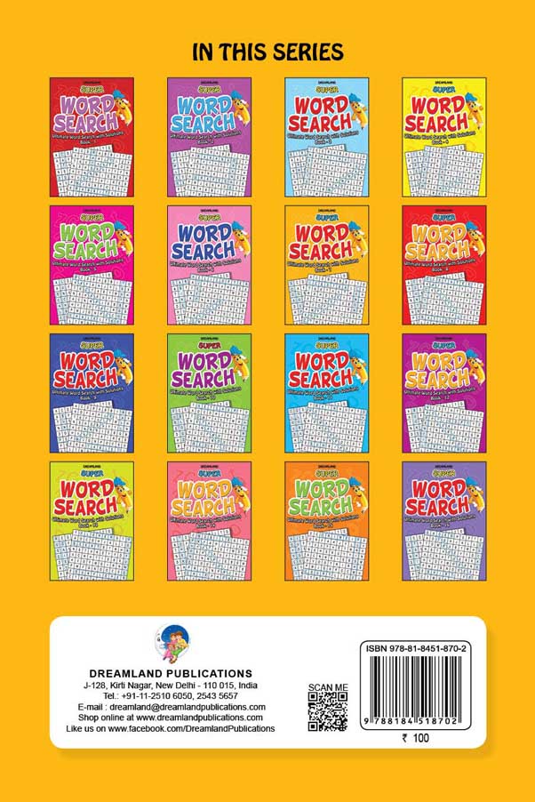 ‘Super Word Search’ is a fantastic book of word search puzzles on various topics. This book will provide hours of entertainment, help the puzzlers enhance their attention, general knowledge, language, and visual search. • Perfect for ages 6-15 • 192 pages • Interesting over 150 topics • Easy-to-read format • Solutions included Ideal for all word-search fans, with over 150 puzzles and solutions provided in easy-to-read format this book is both challenging and enjoyable. It makes a great gift for all to put their observation and word-finding skills to the ultimate test.