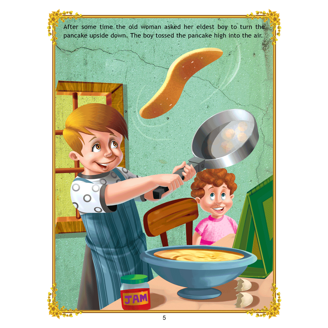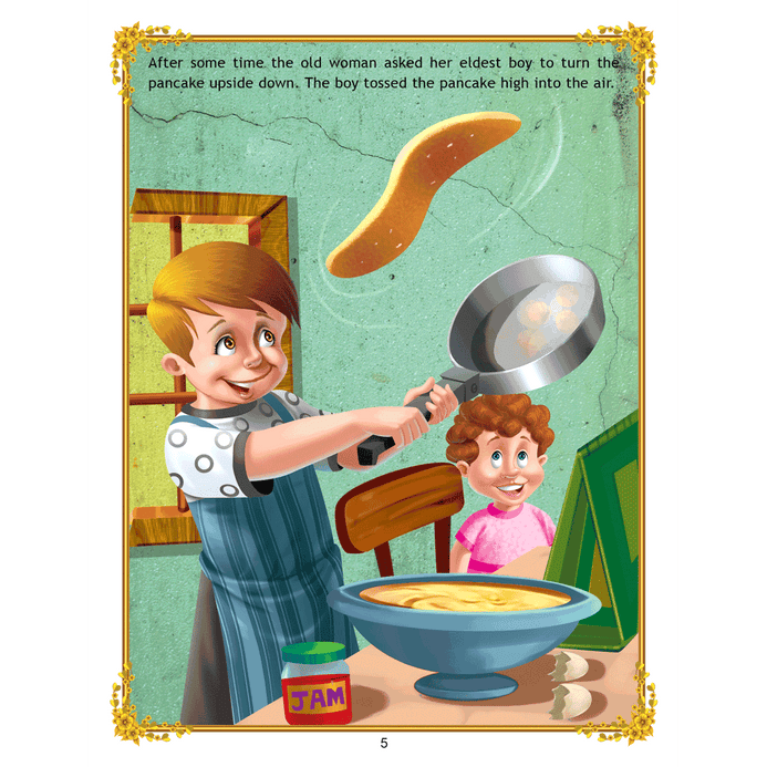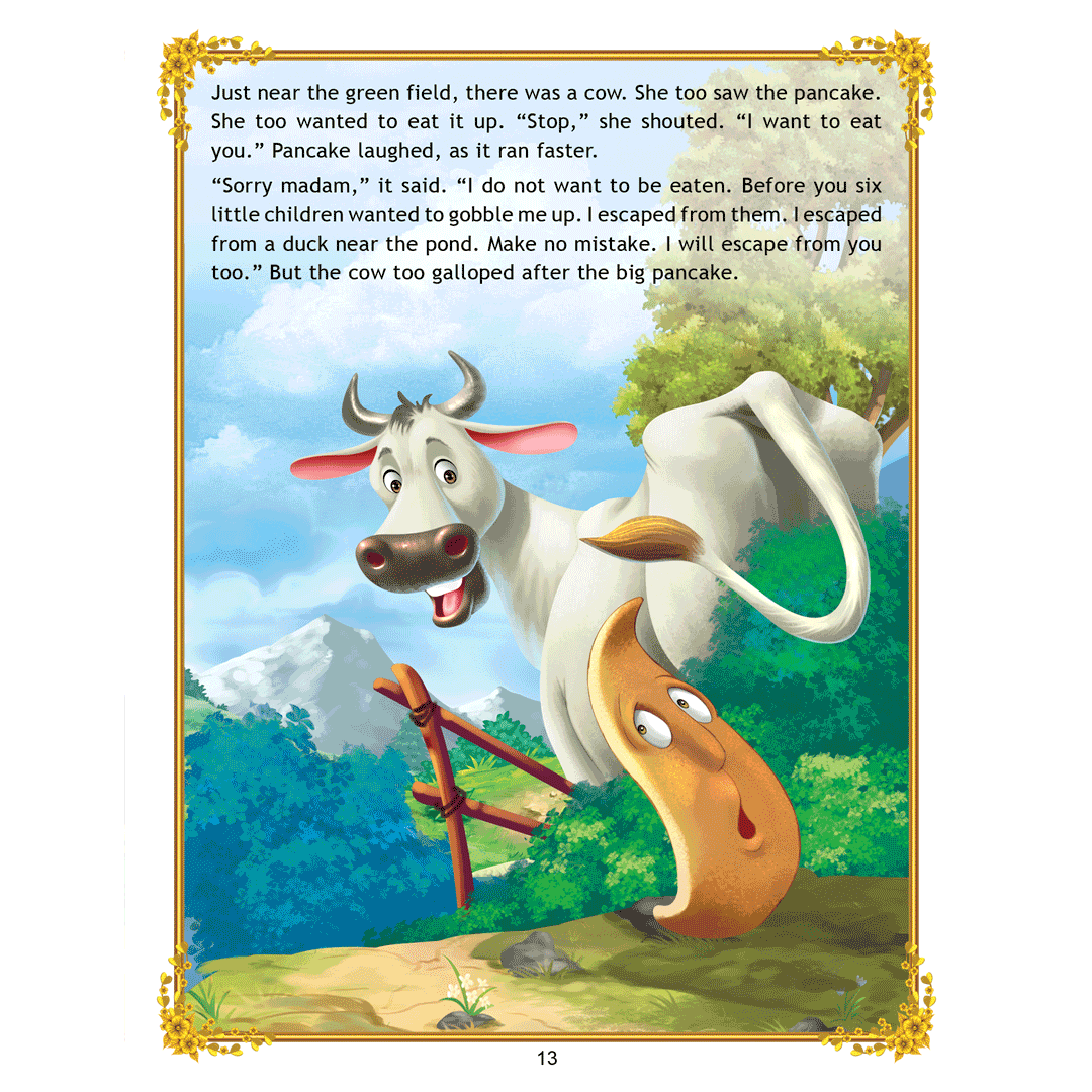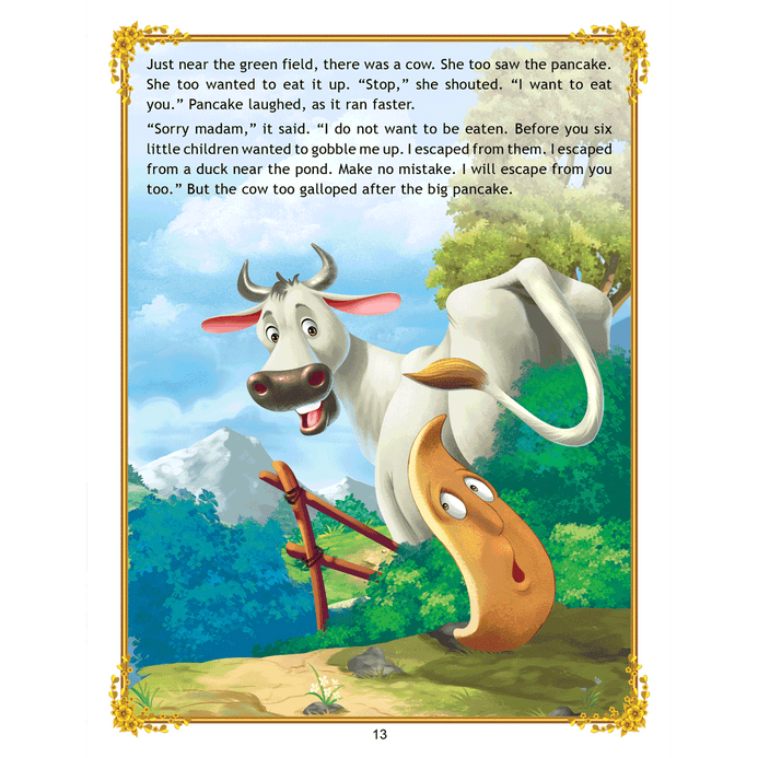 ‘The Big Pancake’ is a story of a runaway pancake trying to escape from hungry little boys and a wide variety of other creatures who wish to eat him. Adorned with charming illustrations, retold in easy language, this is a beautiful book to treasure. • 16 pages • Ideal for age-group 2-6 years • Amazing illustrations • Colourful cover • Inculcates reading habit This storybook is sure to become a favourite of all readers. Filled with humour and adventure it will enchant young readers and listeners. Easy-to-understand text ensures that kids enjoy reading it and improve their language skills as well.