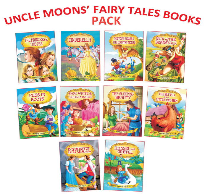 ‘Uncle Moon’s Fairy Tales – 10 Story Books Pack’ includes classic stories with amazing bright illustrations. Retold in very easy language for kids this pack of books contains stories Princess and the Pea, Cinderella, The Town Mouse and the Country Mouse, Jack and the Beanstalk, Puss in Boots, Snow White and the Seven Dwarfs, The Sly Fox and the Little Red Hen, Rapunzel, and Hansel and Gretel. • Ten books of 16 pages each • Ideal for age-group 3-6 years • Amazing illustrations • Colourful cover • Inculcates reading habit Presented through captivating illustrations, this is an excellent version of a famous fairy tale that will be loved by children everywhere. Easy-to-understand text ensures that kids enjoy reading it and improve their language skills as well.