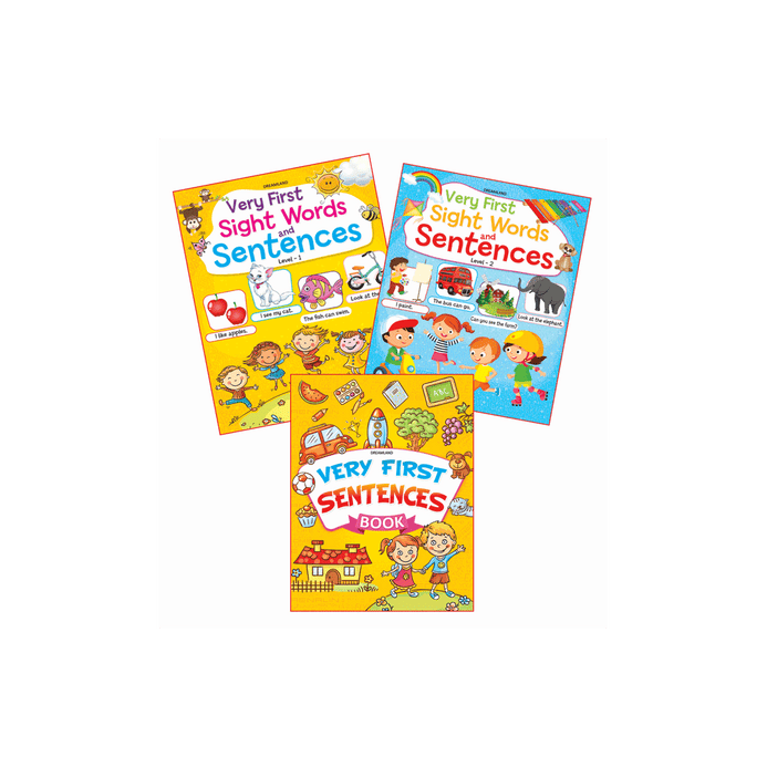 Dreamland Very First Sentence Books - (3 Titles) Very First Sentences Book – a book that helps a child read the most frequently used words that are provided in the early first grade and set them into short easy-reading sentences. Presented in a very attractive and child-friendly manner, this book will become the best companion of every little learner. Very First Sight Words and Sentences – a set of two books suitable for children aged 4+. Sight words are those words that are most commonly used in speech and writing. This set is supported with colourful pictures and simple sentences that help kids spot the sight words and build confidence with early literacy skills.