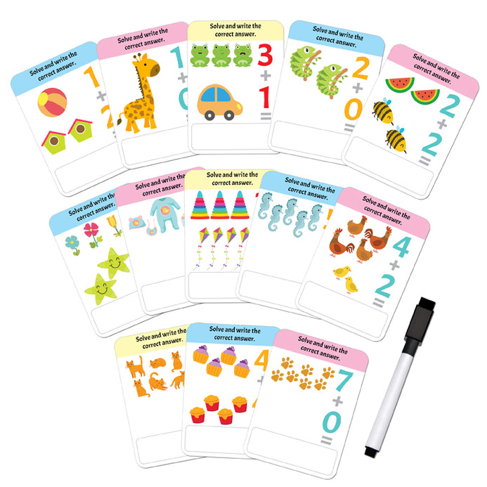 Dreamland Flash Cards Addition and Subtraction - 30 Double Sided Wipe Clean Flash Cards for Kids (With Free Pen)
