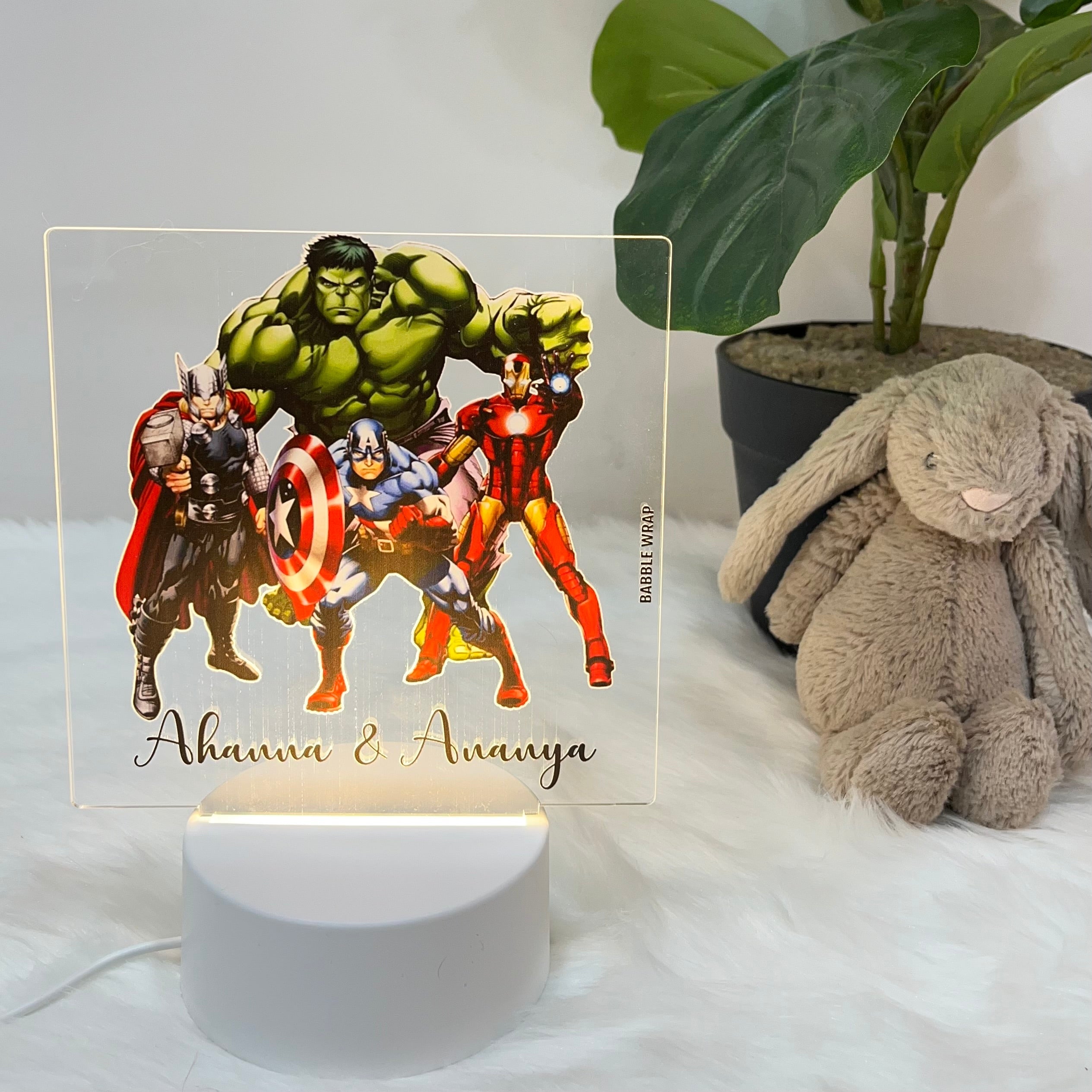 Enhance your baby's sleep space with our Superhero Themed Acrylic USB LED Kids Night Lamp, uniquely personalised for your bundle of joy. With its gentle illumination and customisation options, it's the perfect blend of practicality and sentimentality. Say goodnight to restless nights and hello to peaceful dreams.Includes