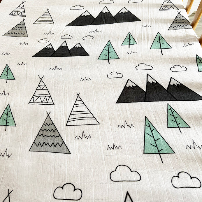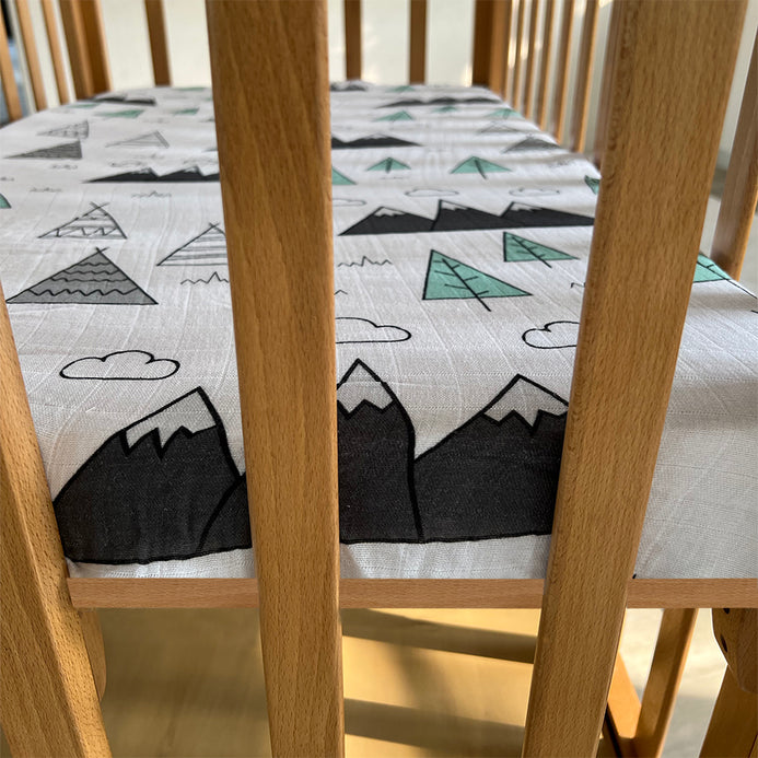 Style your little ones sleep space with our cot fitted sheets made from 100% organic muslin cotton which are designed with love and care, making it the perfect choice for every nursery. The all over prints makes it colourful, interactive, fun and educational. It is soft, comfortable and breathable !! It has an elastic band all around the edge to give an assured fit to a standard size mattress of 27.5" by 55" by 6" depth. The elastic edges ensure that the sheet lies flat and does not slide around. The crib sheets are designed with a snug fit to stay in place on your mattress. It's easy to put on and take off !! The different prints add style to your baby's nursery.