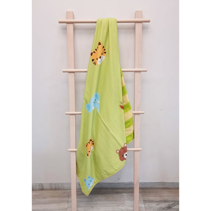 Snuggle your little one in our super soft and comfortable dohar blanket. They have prints on both sides which makes this a wonderful pick for your little bundle of joy. Size 40" (width) by 40" (length). Be it a vacation, cot or a bed the dohar blankets are light weight, easily foldable and very convenient to carry anywhere. Our dohar blankets are made of GOTS certified Organic Cotton. A lovely addition to the nursery, a sweet gift and ideal for the cot, pram. It can be personalised as well.