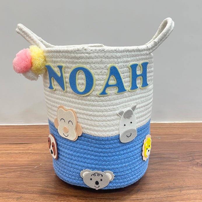 Our Basket crafted from durable jute and soft cotton, it offers both sturdiness and comfort. Perfect for carrying books, toys, or treasures from a galactic journey, this basket is as functional as it is enchanting. Elevate your child's storage with a sprinkle of cosmic magic and practicality, and let their imagination soar among the stars. This space theme basket in bright hues serves as a dual purpose of both kid's room decor as well as storage made easy with two convenient sizes and comes embellished with planets, astronaut, rocket and Earth.