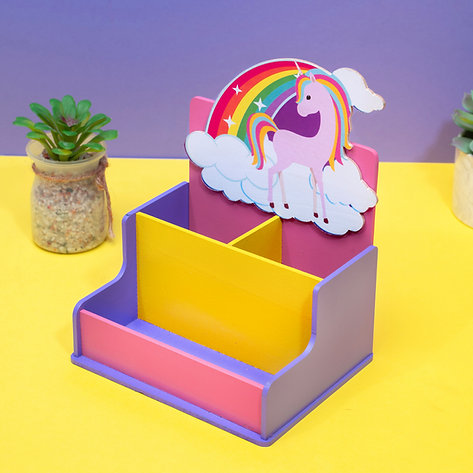 Personalised 2 Slot Stationery Holder | Rainbow Unicorn