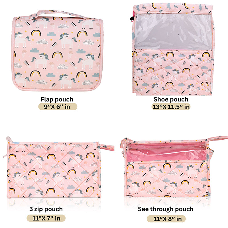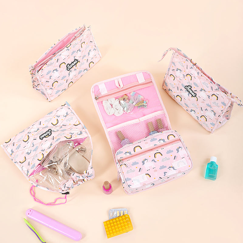 Our 4 piece toiletry pouch set is versatile and perfect for busy little ones and their daily essentials.