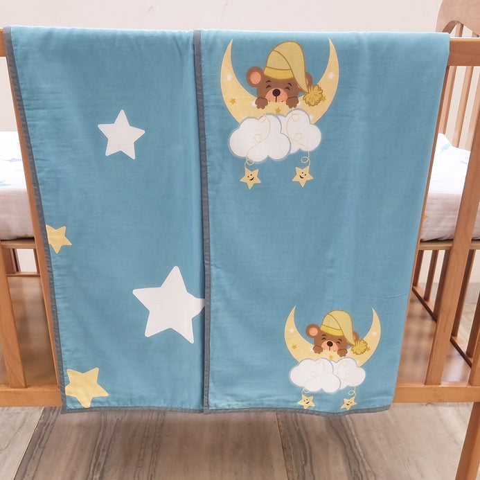 Snuggle your little one in our super soft and comfortable dohar blanket. They have prints on both sides which makes this a wonderful pick for your little bundle of joy. Size 40" (width) by 40" (length). Be it a vacation, cot or a bed the dohar blankets are light weight, easily foldable and very convenient to carry anywhere. Our dohar blankets are made of GOTS certified Organic Cotton. A lovely addition to the nursery, a sweet gift and ideal for the cot, pram. It can be personalised as well.