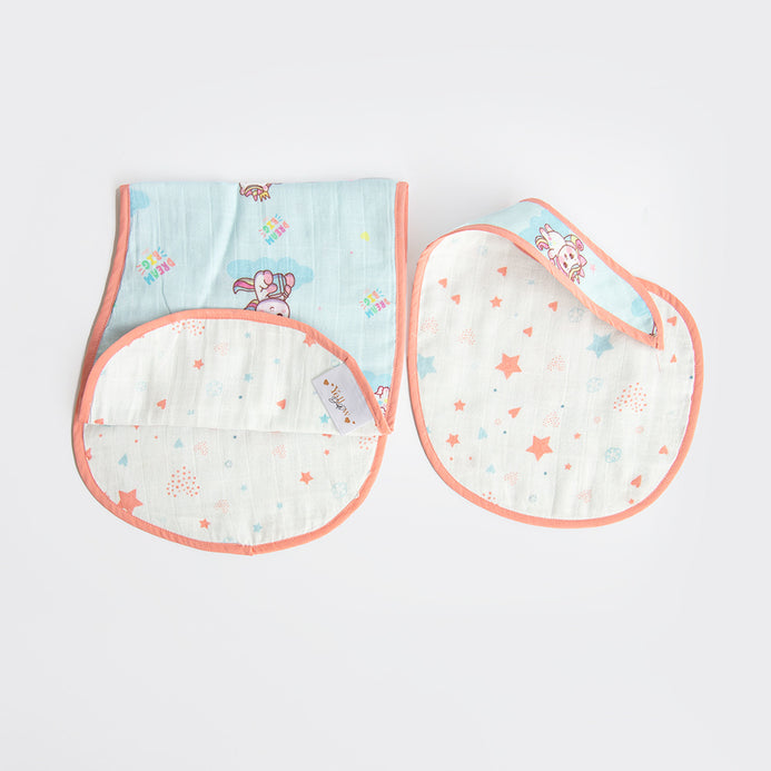 • SIZE & MAKE- Three layers of Organic Cotton Muslin, Reversible & ideal for catching all the messes, Baby Bib- 37 cm long x 22 cm wide, Burpy Cloth- 60 cm long x 25 cm wide, Hypoallergenic, environment- friendly AZO free dyes, Lead & Nickel free poppers. Handmade with care in India.