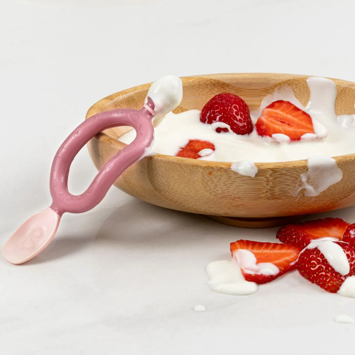 The dipper end is uniquely shaped to support their oral sensory development, and is perfect for yoghurts, porridge and purees, as well as soothing little gums.