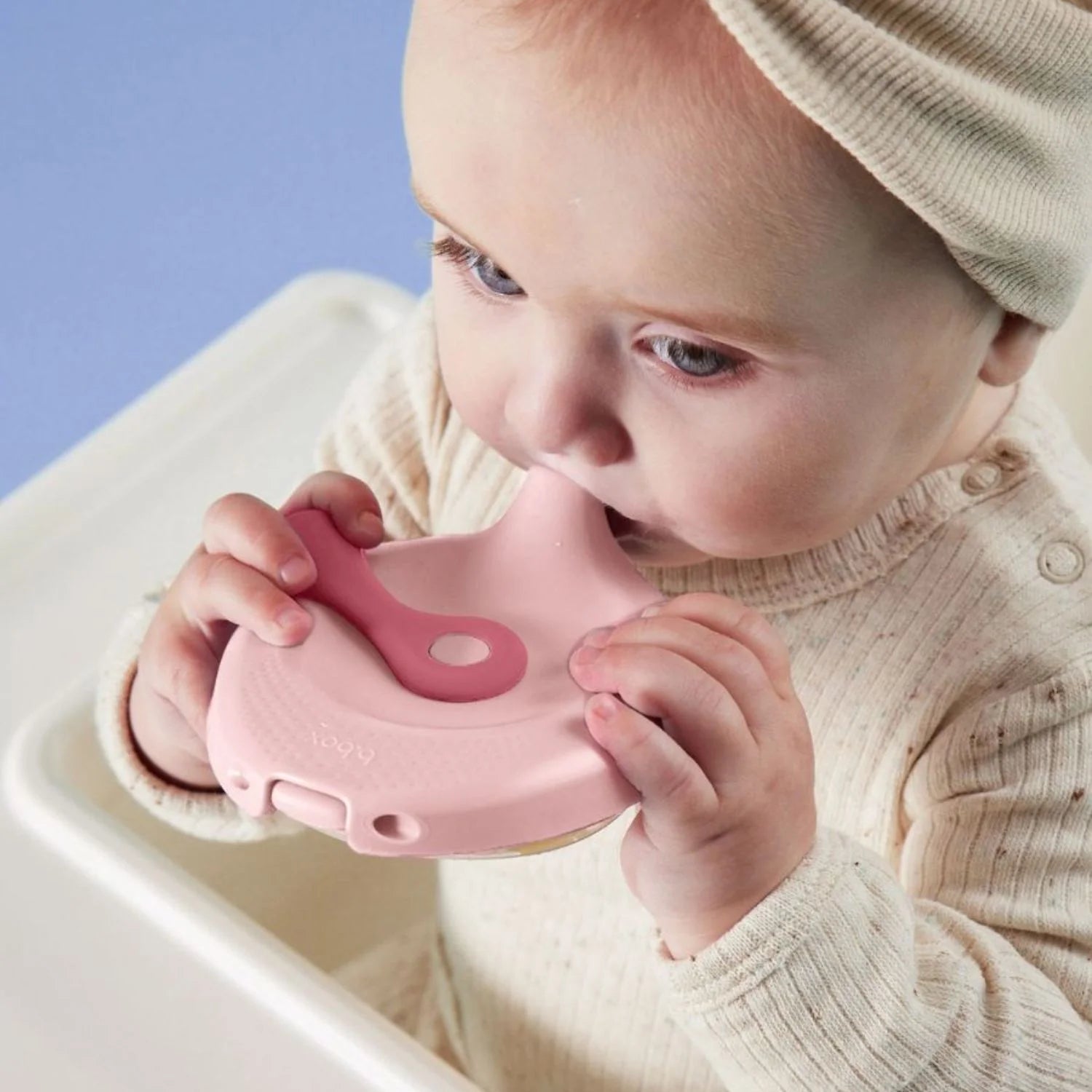 Prepare fresh baby and toddler food at home and take it on the go with our blush coloured, reusable fill + feed! Our latest innovation in child feeding lets folks easily fill a clear silicone food pouch from a wide opening for less mess. Then close the lid and get ready to feed!