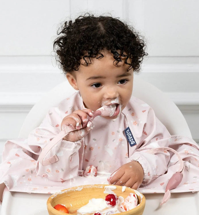 Perfect Fit with Bibado Coverall Bibs - Securely straps to your Bibado Coverall Weaning Bib—so babies can drop and grab their spoon or fork without frustration. No more picking up cutlery mid-meal! Available in 6 matching colors.