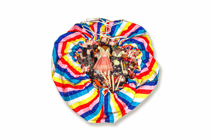 Tire of stepping on all those toys? No worries - Swoop Bags to the rescue! A simple designed toy bag to help LEGO storage and other small toys. Description: These Organic Cotton toy storage bags are simple in design with a clean modern look and the most durable toy bag in the market. Ideal for LEGO storage and other small toys like wooden trains, cars, blocks, dolls, bricks, stuffed animals and more! when opened wide, these bags convert into a circular palymat that 3-4 kids can comfortably paly around. Swoop bags are totally a cleanup dream and toy storage solution for parents, caregivers or anyone facing the challenge of cleaning up all theose little toys. Just "Swoop Up" the tou bag with the nylon cords, tie cords to secure closed and stow in a bin, hang on a bed post, hook or door knob.