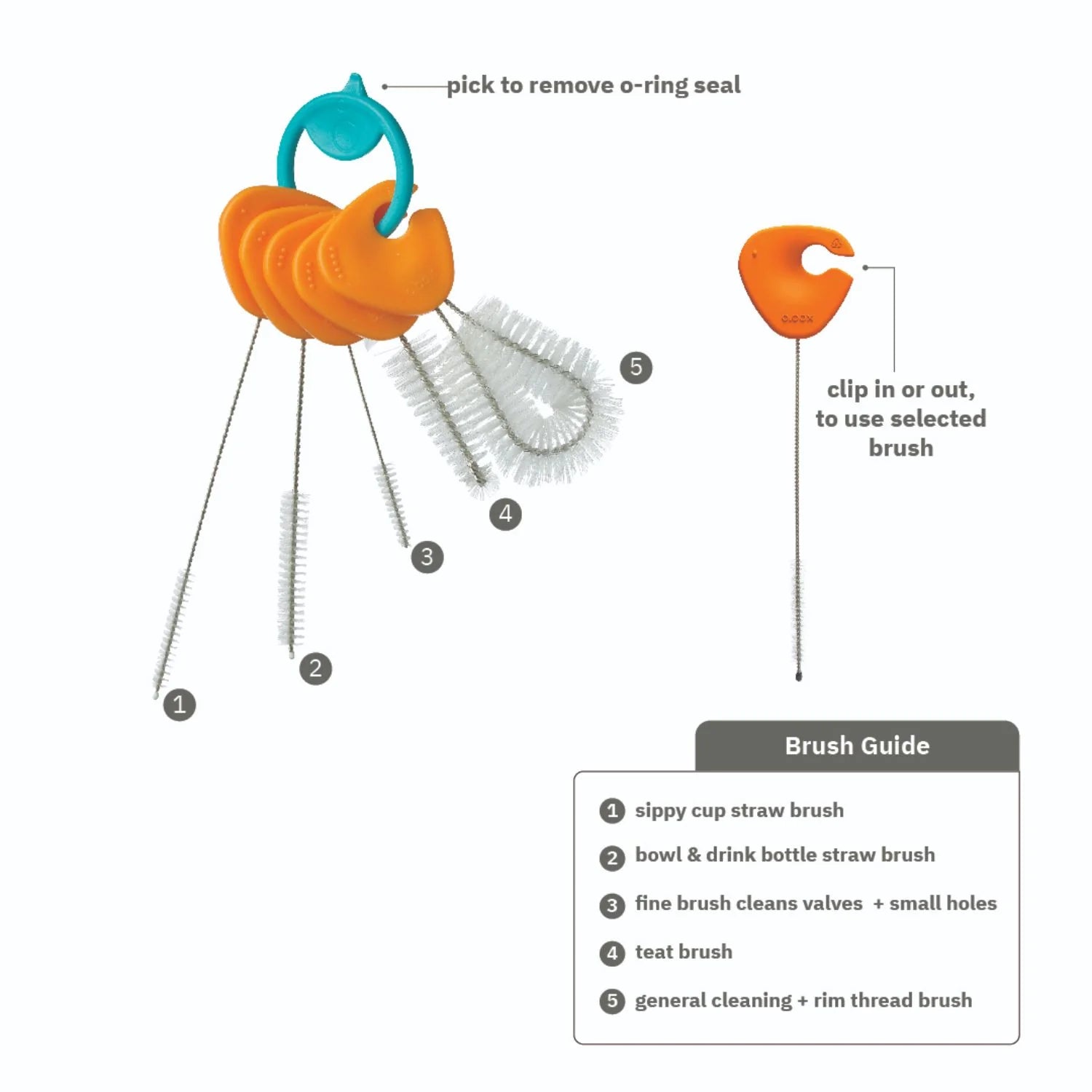 This set contains every cleaning brush you need to hygienically clean sippy cups, drink bottles, straws and other hard to reach places, all on one handy ring. Brushes clip in and out of the handy ring.