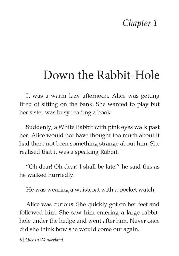 Lewis Carroll's Alice in Wonderland is a beloved children's novel that tell the story of a young girl named Alice who falls into a magical world through a rabbit hole. Along the way, she meets a cast of eccentric characters who speak in cryptic and nonsensical language. As Alice navigates this strange world, she finds herself caught up in a trial and struggles to make sense of the animal's odd behaviour. This story has captured the hearts of readers for generations and remains a classic in children's literature.