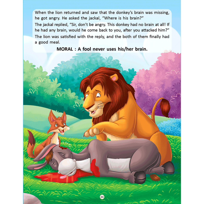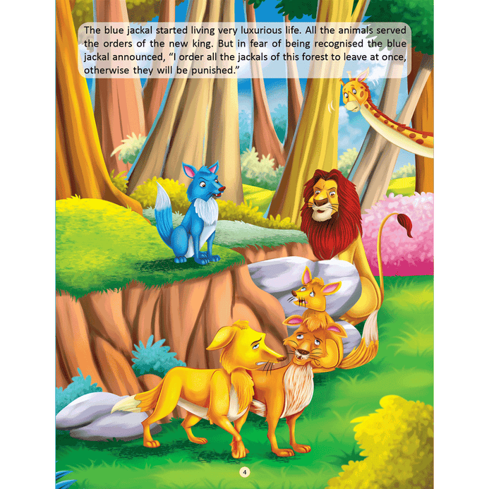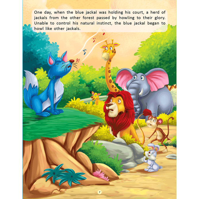 Stories have an important place in our lives. ‘Blue Dyed Jackal’ this beautifully illustrated story from Panchatantra is presented in a very simple language that teaches us a moral lesson that those who leave their kind will not be able to live happily. • 32 pages • Ideal for age-group 4-7 years • Easy-to-understand language • Amazing illustrations • Colourful cover • Inculcates reading habit The beautiful characters of the story help children to use their wisdom in all situations. This story will influence the delicate minds of kids by values and good habits while keeping them entertained.