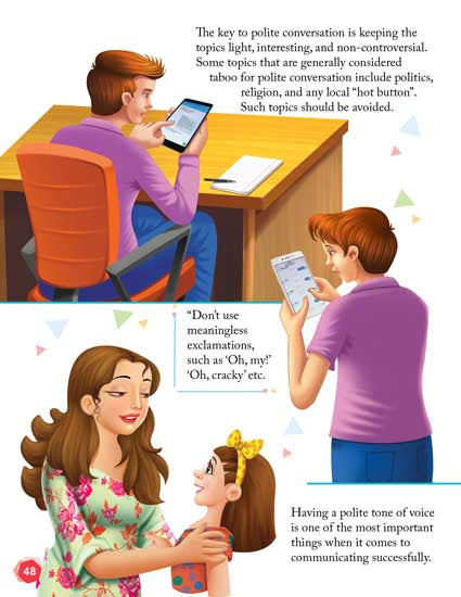 Good manners and etiquette are important for children of every age. Etiquette for children- Book 3 focuses to teach good behaviour to children. Each topic is defined through charming illustrations supported by the easy-to-understand text. • Ideal for age-group 5-12 years • Simple language • Amazing illustrations • Colourful presentation From telephone etiquette to social media etiquette, netiquette to conversational skills, this book will teach kids how to use manners while using digital technology. Kids will have fun as they learn to use manners in a way that will make their lives easier and more enjoyable.