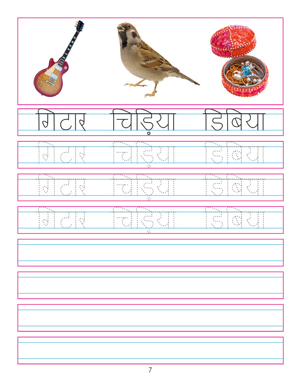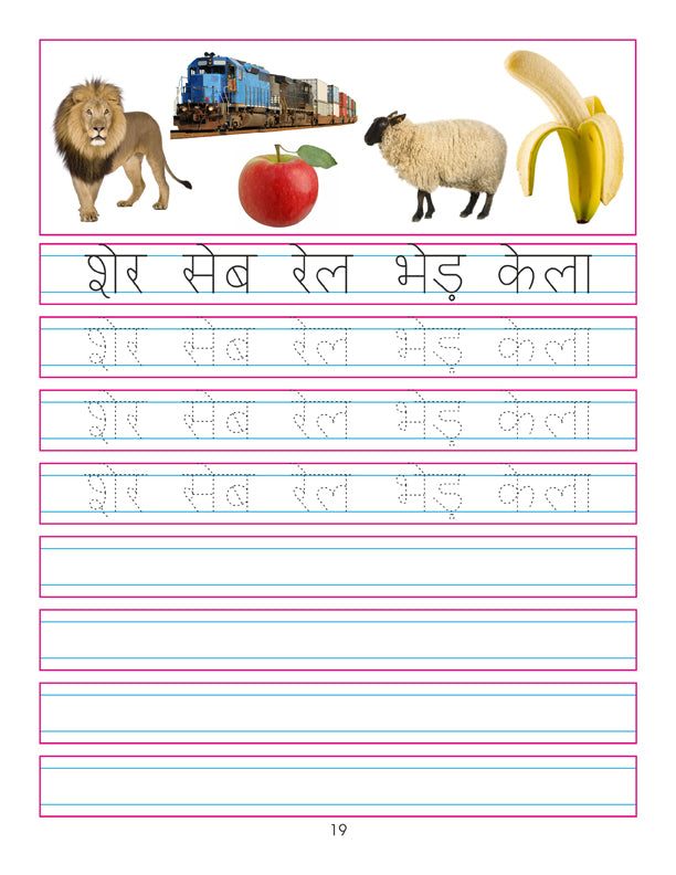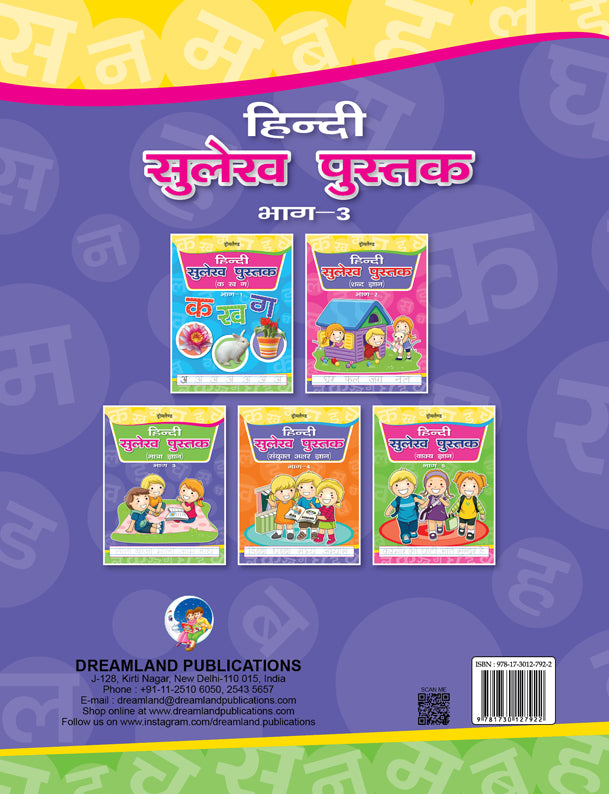 Hindi SulekhPustak Part – 3 is designed to teach children first Hindi words. This book features Hindi words with pictures of associated objects to explain each word. Kids can first learn to write the word by simply tracing on the dotted alphabets and then practice writing them on their own. • Ideal for ages 3-7 • 48 practice pages • Colourful images for each letter of the Hindi language • Improves handwriting • Encourages independent learning This colourful picture book is aimed to make learning easy by introducing kids to everyday Hindi words through colourful images. It will also help children enhance their Hindi vocabulary.
