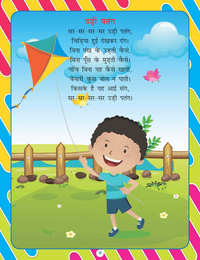 ‘Nursery Rhymes and Story Book’ in the Hindi language is a wonderful learning tool to be treasured by early learners throughout their childhood. The collection contains traditional nursery rhymes and well-loved stories. • Perfect for age-group 3-5 • 32 pages including all-time favourite rhymes and stories • Cute cover design • Bright and beautiful illustrations This book makes a great gift for kids. Reading and listening to the well-loved rhymes and stories will not only entertain kids but also teach them to sing along, act, and moral value of life.