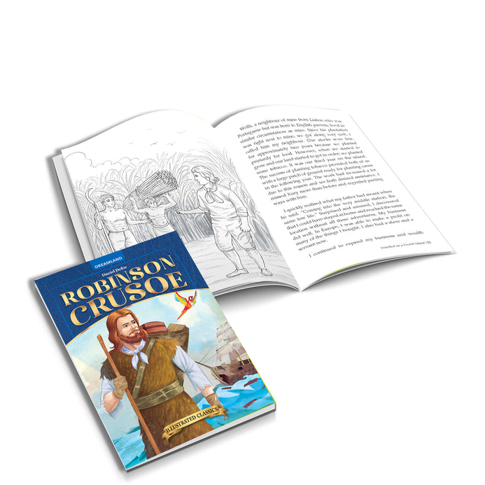 Dreamland Robinson Crusoe- Illustrated Abridged Classics for Children with Practice Questions