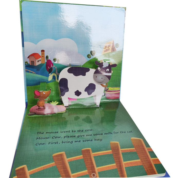 A pop-up story book where characters come to life as they pop put while reading and turning the pages. The story is adapted in short sentences and simple vocabulary. Together it makes for an amazing read for the little one and a wholesome learning experience. It encourages reading, development of vocabulary and speaking skills.