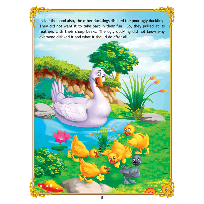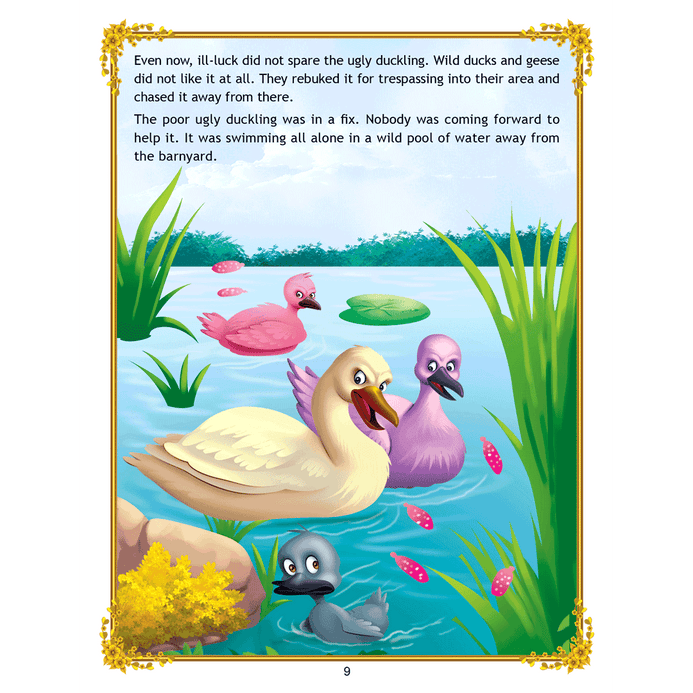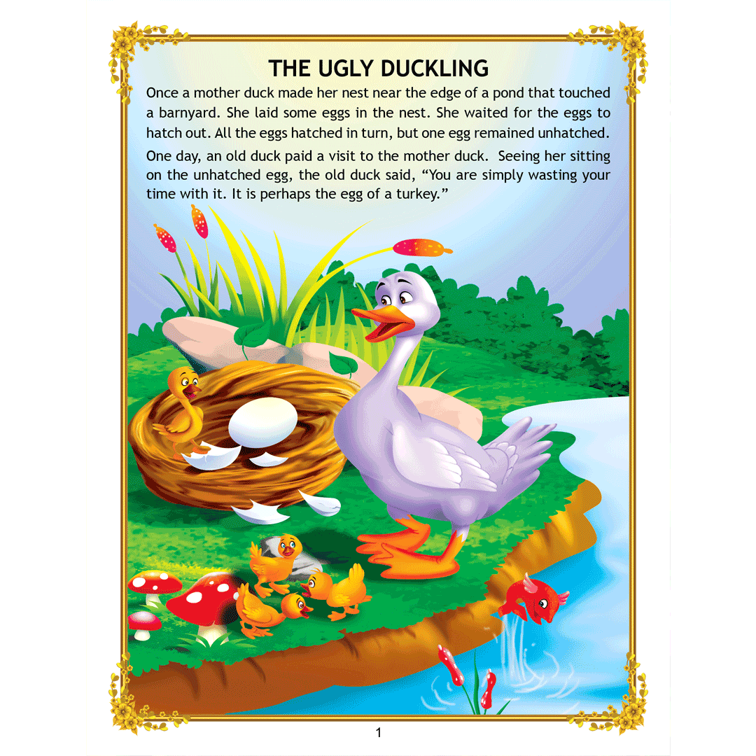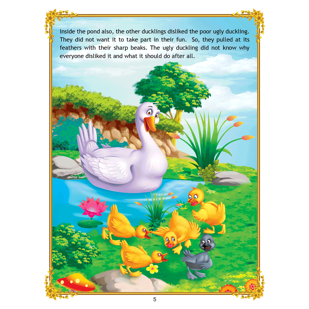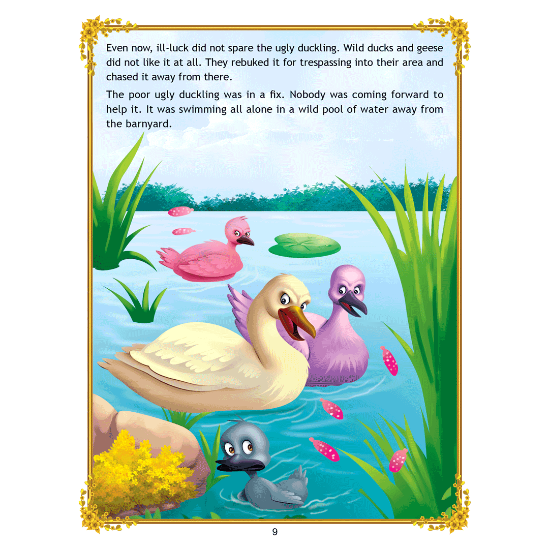 ‘Uncle Moon’s Fairy Tales – Ugly Duckling’ is a story of a plain-looking little bird whom his brothers and other farm animals tease because of his looks. Poor duckling wanders alone through the fall and winter till he meets a group of swans, and realises that he too is a swan. This interesting story presented with colourful illustrations and simple text will make an excellent first reader for young children. • 32 pages • Ideal for age-group 2-6 years • Amazing illustrations • Colourful cover • Inculcates reading habit Presented through captivating illustrations, this is an excellent version of a famous fairy tale that will be loved by children everywhere. Easy-to-understand text ensures that kids enjoy reading it and improve their language skills as well. ?