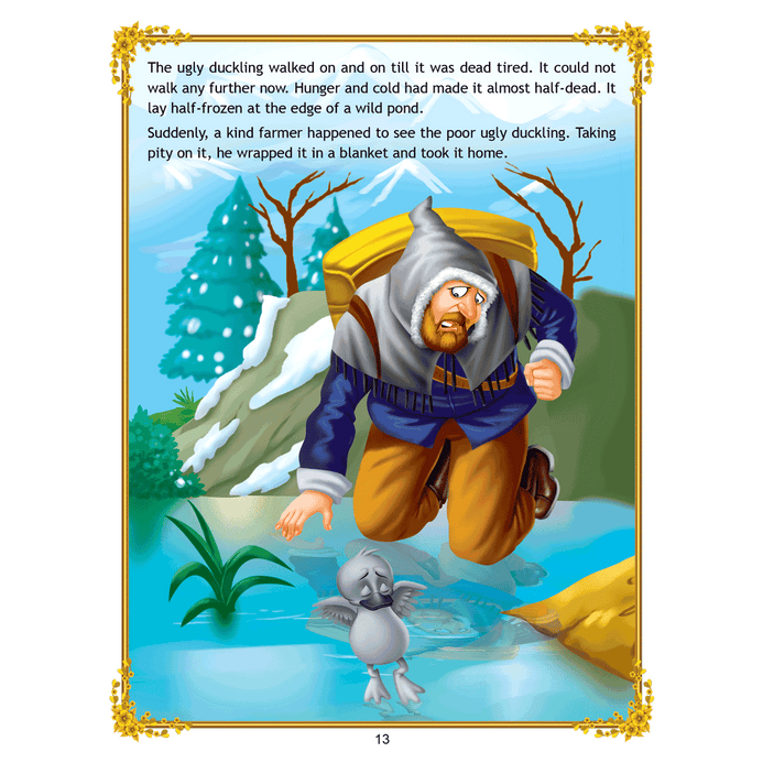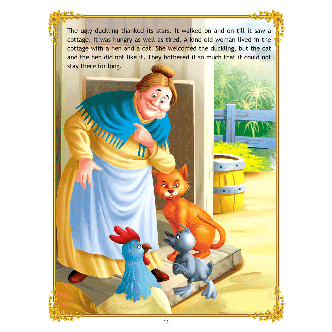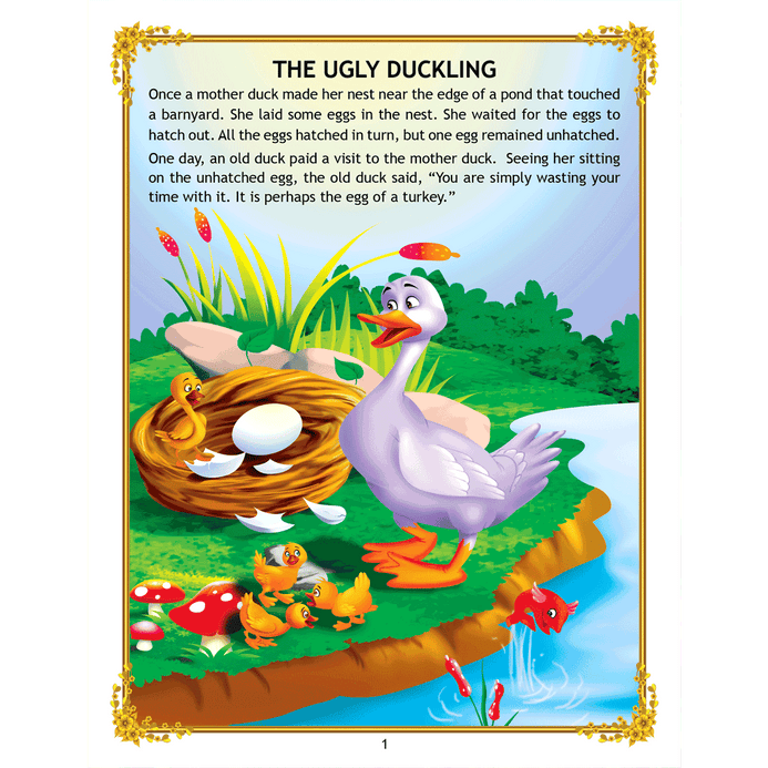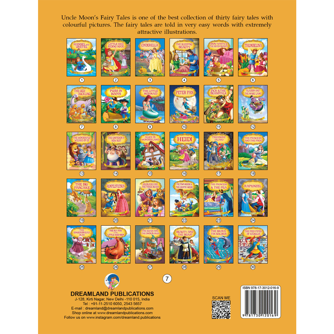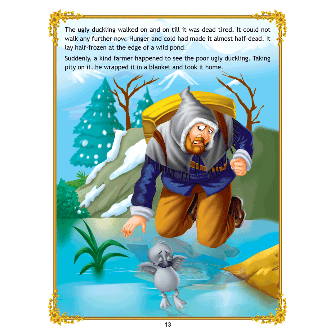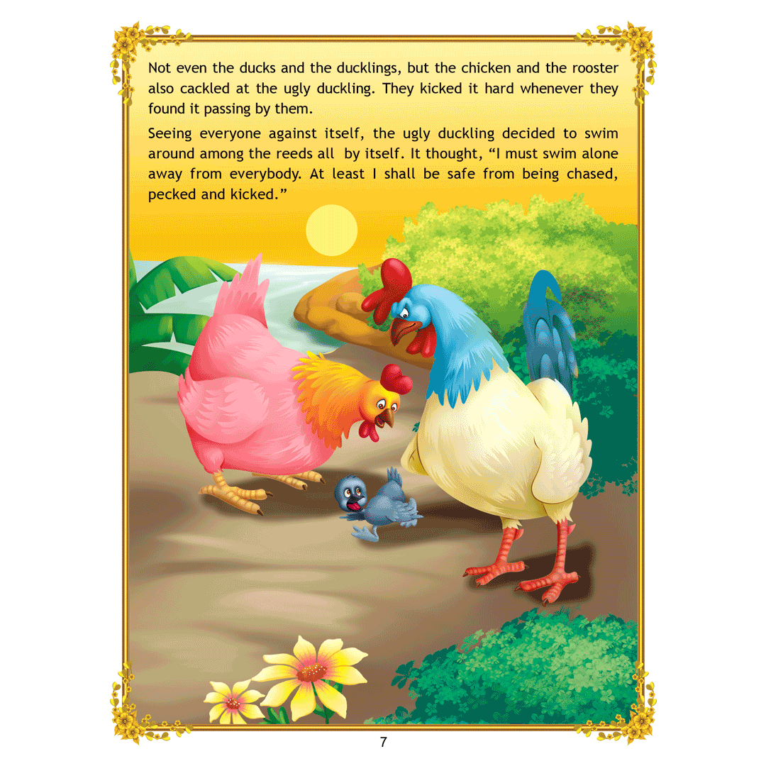 ‘Uncle Moon’s Fairy Tales – Ugly Duckling’ is a story of a plain-looking little bird whom his brothers and other farm animals tease because of his looks. Poor duckling wanders alone through the fall and winter till he meets a group of swans, and realises that he too is a swan. This interesting story presented with colourful illustrations and simple text will make an excellent first reader for young children. • 32 pages • Ideal for age-group 2-6 years • Amazing illustrations • Colourful cover • Inculcates reading habit Presented through captivating illustrations, this is an excellent version of a famous fairy tale that will be loved by children everywhere. Easy-to-understand text ensures that kids enjoy reading it and improve their language skills as well. ?