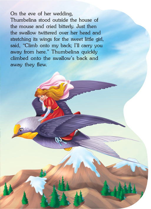 Thumbelina is a story of a cute tiny thumb-sized girl and her adventures with toads and moles until she meets a flower-fairy prince just her size. Featuring 12 pages of captivating illustrations, ‘Wonderful Story Board-Book – Thumbelina’ is one of the well-loved fairy tales. • Ideal for ages 4-6 • Beautifully illustrated • Sturdy board book • Attractive die-cut design • Cute cover • Fully-laminated pages This classic retold tale with a cute die-cut presentation is sure to capture tiny tots’ interest, page after page, as they take their imagination on a magical journey. It is indeed to remain a favourite of children to read or listen to again and again.