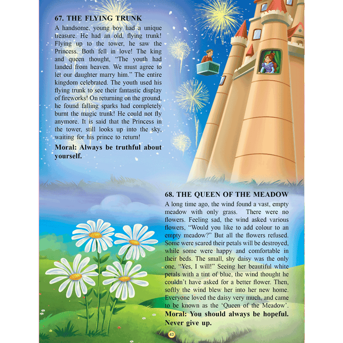 Typically written for children, ‘101 Fairy Tales’ is a collection of traditional stories that include Cinderella, Beauty and the Beast, Puss in Boots, Little Red Riding Hood, and many more popular tales having lasting fame. • Ideal for ages 7-12 • Lush, vibrant illustrations • 64 pages of beautifully crafted stories • Fun and engaging • Teaches moral values Encouraging the reading skills of children, this fun and engaging book imparts important moral lessons to help children learn the values of life. This book will keep youngsters engaged as they cherish reading or listening to these classic tales.