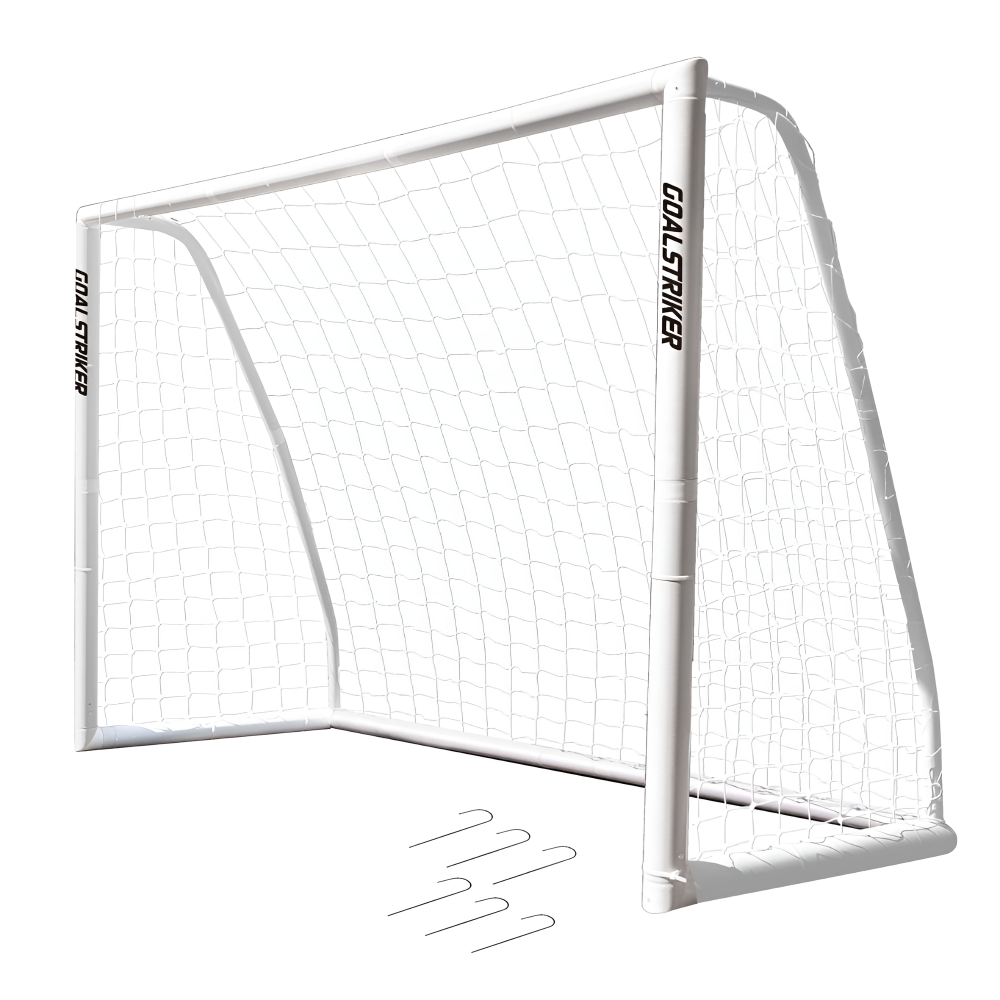 The Innov8 Backyard Weatherproof Soccer Goal is a top-tier soccer goal designed for backyard enthusiasts and serious players. Crafted from high-grade UPVC, it withstands harsh weather conditions, ensuring durability and longevity. Its sturdy construction features thickened 2.7-inch and 1.6-inch UPVC pipes, reinforced joints, and 6 ground stakes for added stability.