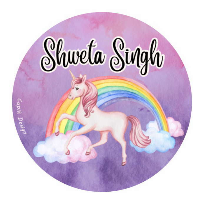 Personalised Round Name Stickers | Unicorn & Rainbow