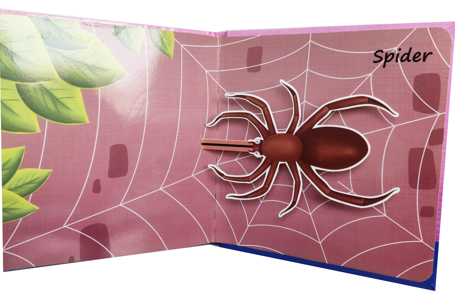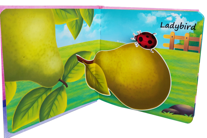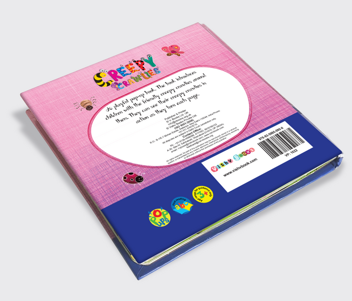 A playful pop-up book. The book introduces children with the friendly creepy crawlies around them. They can see their creepy crawlies in action as they turn each page.
