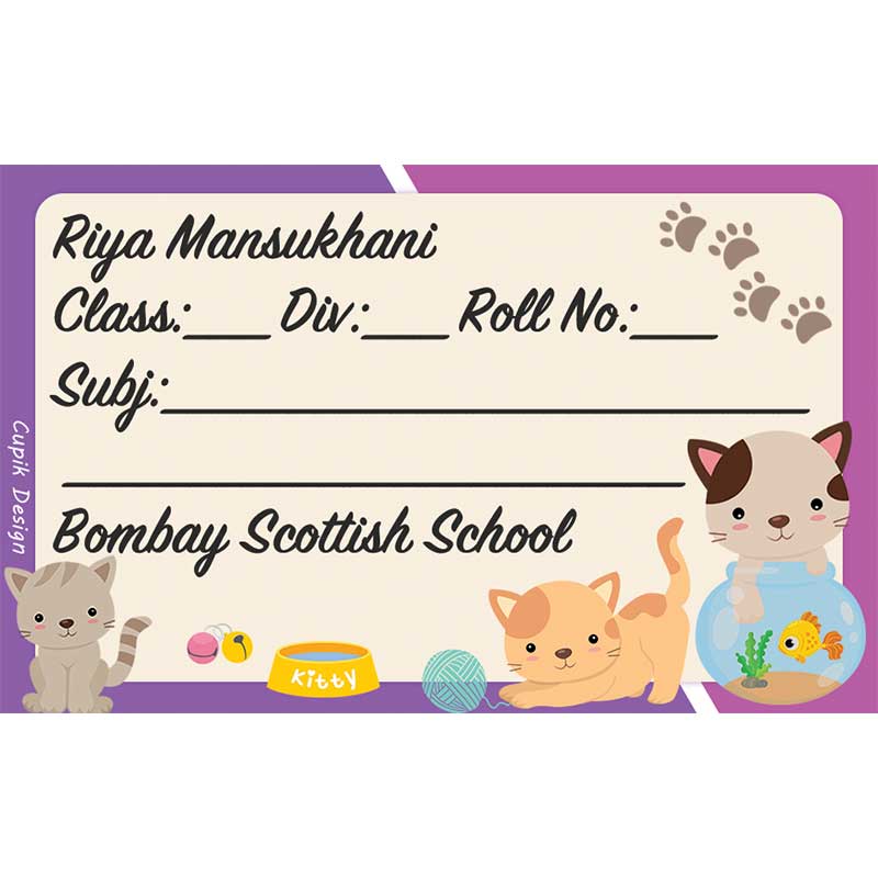 Add a personal touch to your school books with your own pre-printed school labels. Just enter all the info you'd like us to put on your label, and we'll print it for you just as you like it.