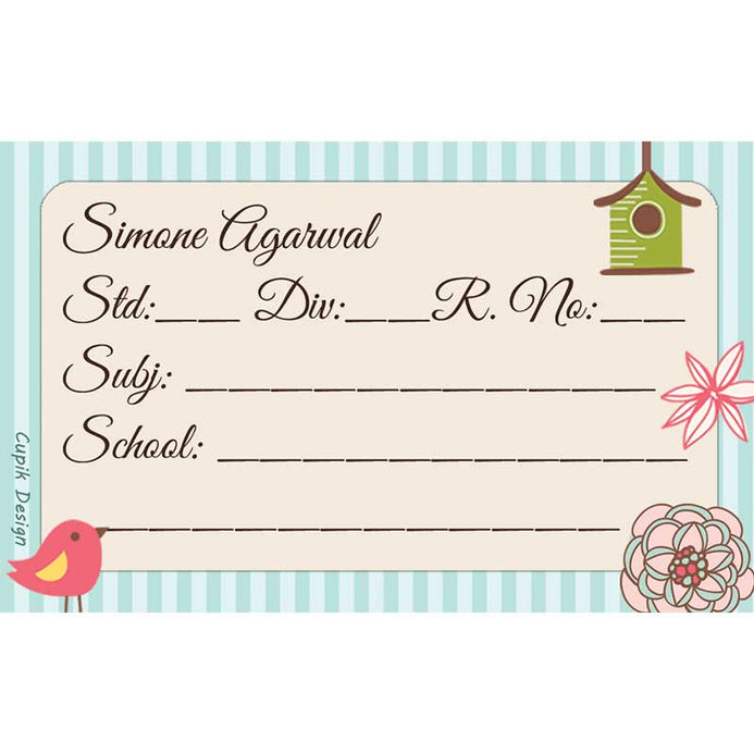 Add a personal touch to your school books with your own pre-printed school labels. Just enter all the info you'd like us to put on your label, and we'll print it for you just as you like it.