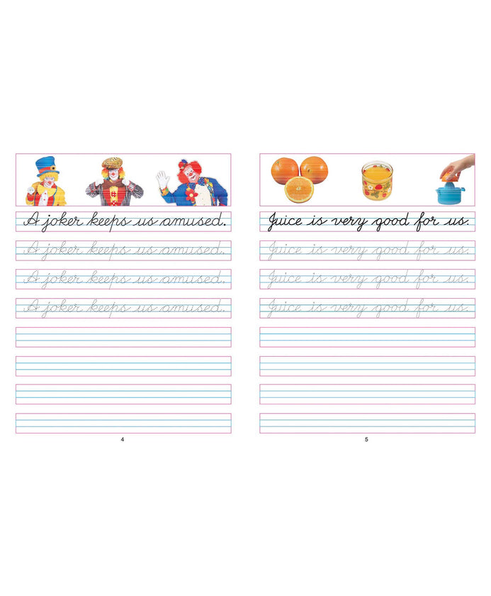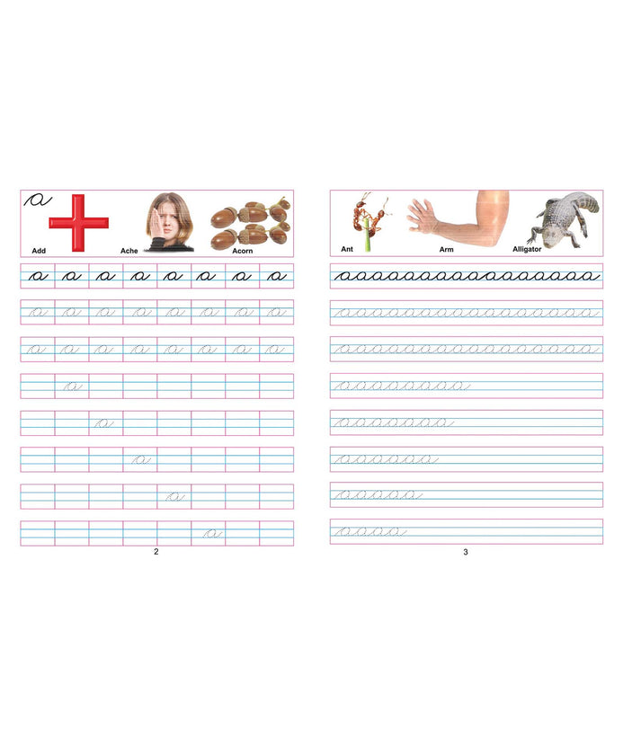 Cursive writing is written with rounded letters that are joined together. Cursive Writing Books – A set of 7 books shows how to perfectly write each cursive upper and lower case letter, join them, form words, and then write sentences. Each book simply keeps children busy with mind-stimulating exercises. • Ideal for ages 3-7 • Ample practice pages in each book • Enhances independent learning • Colourful presentation • Keep children motivated This set of seven books is an excellent step to improve handwriting. These books speak with children through pictures that make understanding of the words easier and learning handwriting enjoyable.