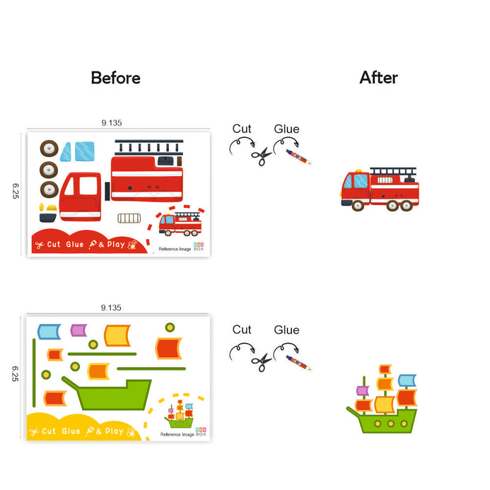 Designed for young learners aged 2.5 to 9 years, our DIY Paper Cut & Glue Activity - Vehicles engages children of different age groups, making it an excellent choice for family playtime or educational settings.