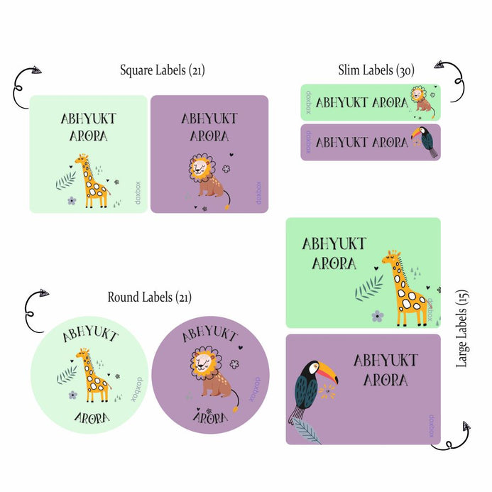 These labels are water proof and this combo packs comes with 4 different sizes which can be used as per requirement. These can be used on books, bottles , tiffin etc.
