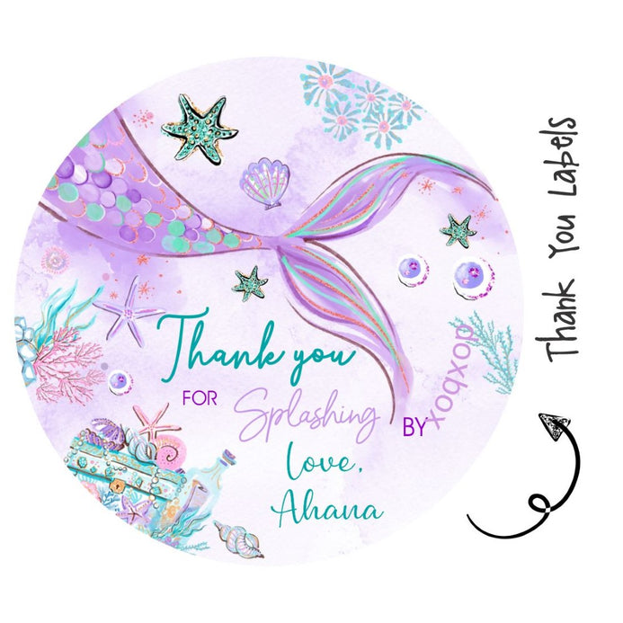 Personalised Round Thank You Labels | Mermaid Love